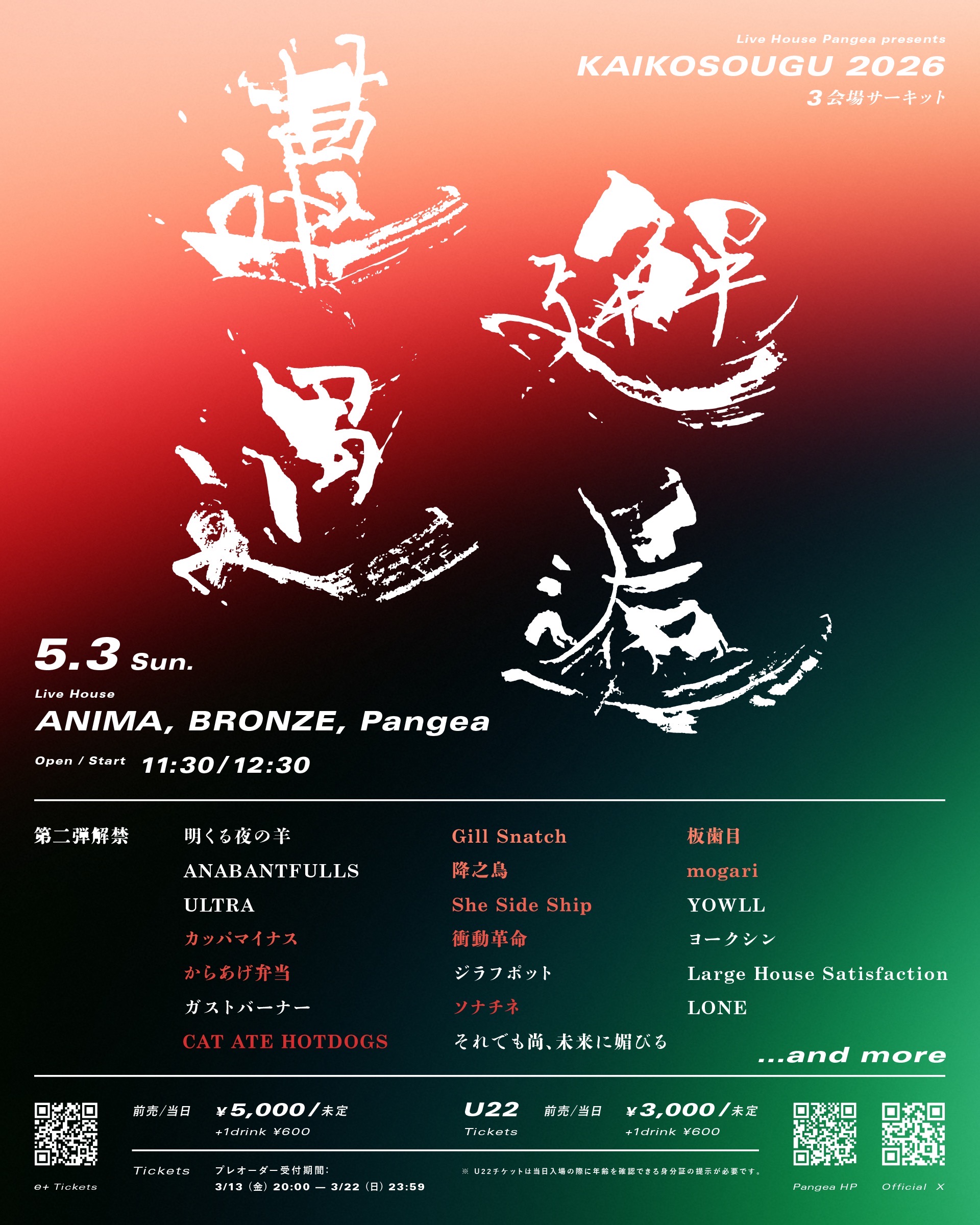 2026.05.03(日)大阪・心斎橋ANIMA / Pangea / BRONZE 3会場サーキット