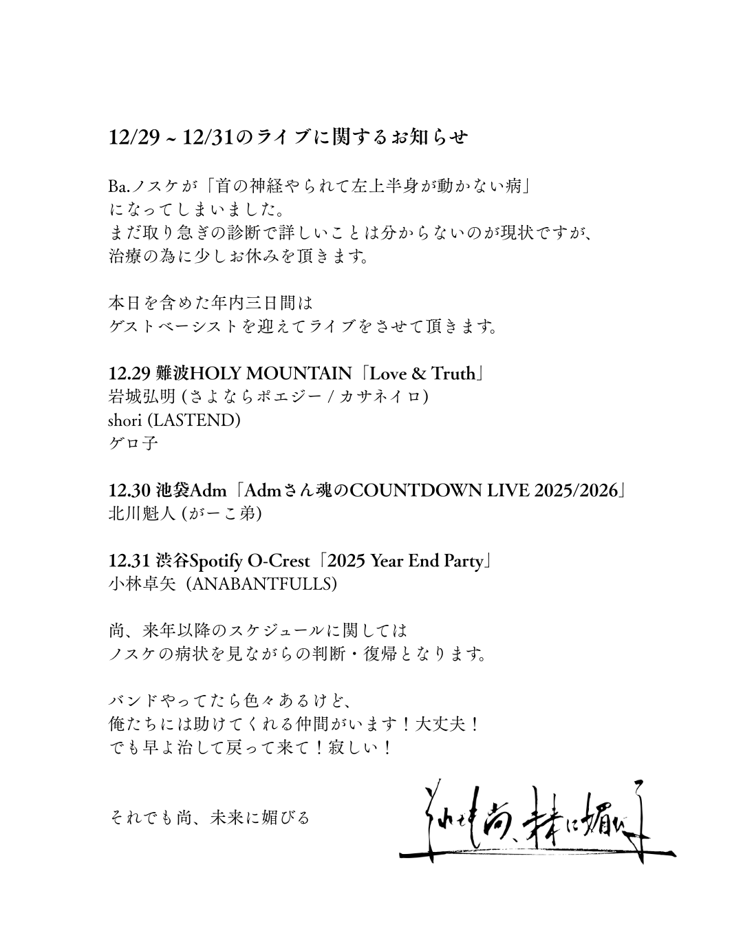 12/29 ~ 12/31のライブに関するお知らせ